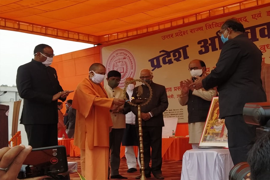 मा0 मुख्यमंत्री श्री योगी आदित्यनाथ जी ने बुधवार को के0पी0 कालेज ग्राउण्ड में उत्तर प्रदेश राज्य विधिक परिषद एवं इलाहाबाद हाईकोर्ट बार एसोसिएशन के संयुक्त तत्वाधान में आयोजित प्रदेश अधिवक्ता समागम-2020 के कार्यक्रम में बतौर मुख्य अतिथि के रूप में सम्मिलित हुए। कार्यक्रम के प्रारम्भ में मा0 मुख्यमंत्री जी ने सर्वप्रथम दीप प्रज्जवलित कर अधिवक्ता समागम कार्यक्रम की शुरूआत की। इस अवसर पर मा0 मुख्यमंत्री जी ने अधिवक्ता समागम कार्यक्रम में शामिल होने के आमंत्रण पर बार कौंसिल एवं इलाहाबाद बार एसोसिएशन का आभार व्यक्त किया। मा0 मुख्यमंत्री जी ने ज्ञान, आस्था एवं न्याय की धरती प्रयागराज को कोटि-कोटि नमन कर समागम में उपस्थित अधिवक्ताओं को सम्बोधित करते हुए कहा कि अधिवक्ताओं समाज के निर्माण एवं समाज का जागरूक करने में महत्वपूर्ण भूमिका है। अधिवक्तागण विश्वास के प्रतीक है। कहा कि जब व्यक्ति अपनों से हारता है तो वह भौतिक रूप से अधिवक्ता के पास जाता है। आपकी वेशभूषा विश्वास का प्रतीक है। उन्होंने कहा कि विश्वसनीयता जब तक बनी रहेगी तब तक न्यायपालिका पर आमजन का विश्वास बना रहेगा। इस विश्वास को बनाये रखना हम सब का दायित्व है। मा0 मुख्यमंत्री जी ने कहा कि समाज के निर्माण में, भारत की स्वाधीनता में, यशस्वी नेतृत्व देने में और समाज को जागरूक करने में अधिवक्ता समाज का बहुत बड़ा योगदान है। लोक कल्याण एवं राष्ट्र कल्याण के लिए समाज की हर ज्वलंत समस्या में मुखरता के साथ अधिवक्ता समाज हर समय खड़ा रहता है, अगर कोई नीति लोक कल्याण एवं राष्ट्र कल्याणकारी नहीं है, तो उसके विरोध में भी मुखरता के साथ खड़ा होना भी यह समाज जानता है, वास्तविकता में अधिवक्तागण लोकतंत्र के स्तम्भ है। उन्होंने अपने सम्बोधन में कहा कि पिछले 9 माह से वैश्विक महामारी कोविड-19 से हम लड़ रहे है, कोविड के खिलाफ लड़ाई में उ0प्र0 अग्रणी रहा है। देश के अंदर कोविड-19 के खिलाफ लड़ाई में सबसे अच्छा कार्य उ0प्र0 का रहा है। प्रदेश में इस समय 18 हजार से कम कोविड पाॅजिटिव केस है। कोविड-19 से लड़ाई में हमारे प्रदेश की सराहना डब्लूएचओ के द्वारा भी की गयी है। यह सब मा0 प्रधानमंत्री जी के मार्गदर्शन एवं आप लोगो के सहयोग से सम्भव हो पाया है। आज भारत इस बीमारी पर विजय की ओर बढ़ रहा है। इसमें उ0प्र0 का सबसे बड़ा योगदान है। वैक्सीन आने की तैयारी है, इसके सुचारू रूप से क्रियान्व्यन के लिए प्रदेश ने कमर कस ली है। आज भारतीय संस्कृति को पूरी दुनिया सम्मान दे रही है और अपना रही है। मा0 प्रधानमंत्री जी के नेतृत्व में भारत पूरी दुनिया में अपना प्रमुख स्थान बनाते हुए आज आत्मनिर्भरता की ओर तेजी से आगे बढ़ रहा है। उन्होंने कहा कि इसी क्रम में प्रदेश सरकार द्वारा चल