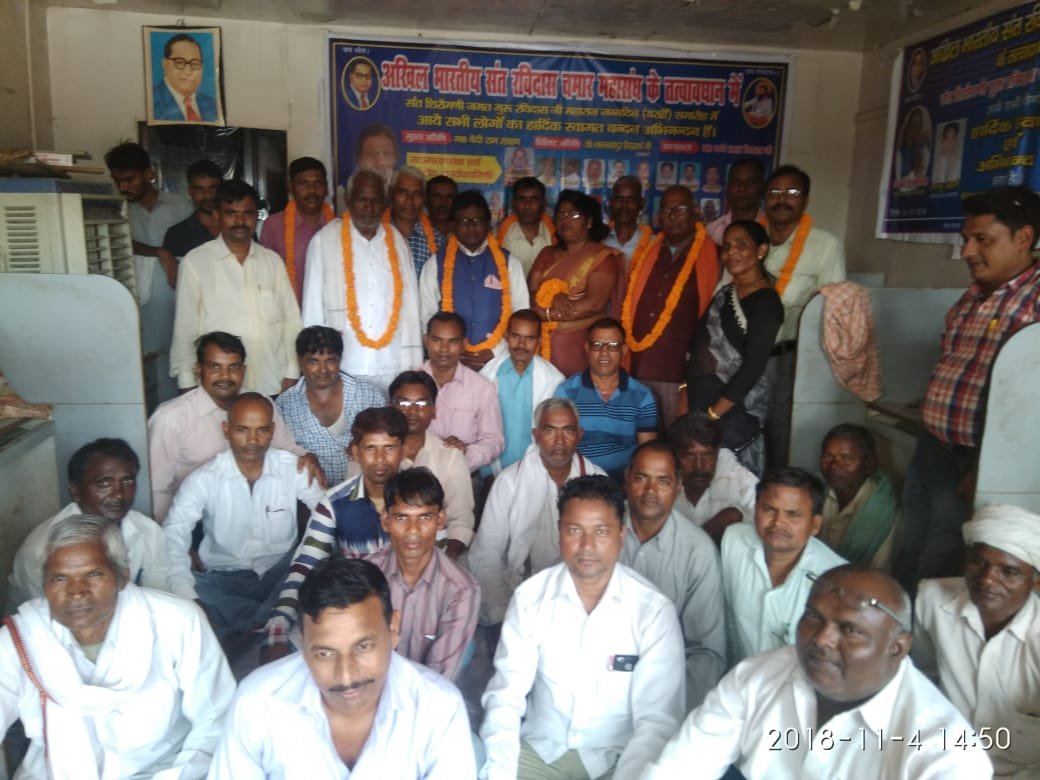 आज दिनांक 4 नवंबर 2018 अखिल भारतीय संत रविदास चमार महाशंघ के केंद्रीय कार्यालय ग्राम सराय सेखलार्ड सिंधोरा वाराणसी में मसिक बैठक में राष्ट्रीय कार्यकारिणी, केंद्रीय, प्रदेश, मंडल, जिला के पदाधिकारियों और समीक्षाधिकारियों की बैठक बुलाई गई। जिसमें अभासरम के वार्षिक महासम्मेलन के सफल होने पर सदस्यों के मनोबल को बढ़ाने व संगठन की समीक्षा की बैठक की गई।जिसमें कुछ पदाधिकारियों को राष्ट्रीय कार्यकारिणी सदस्य मनोनीत किया गया। जिसमे संचालन माननीय रामानंद जी (जौनपुर जिलाध्यक्ष)ने की और राष्ट्रीय अध्यक्ष माननीय बच्चेलाल निराला जी ,राष्ट्रिय उपाध्यक्ष शिवचन्द भारती, राष्ट्रिय कोषाध्यक्ष माननीय ओमप्रकाश, वाराणसी मंडल उपाध्यक्ष व् मीडिया प्रभारी माननीय बबलू कुमार जैसवारा, मंडल उपाध्यक्ष माननीय छोटेलाल गौतम, जौनपुर जिलाध्यक्ष रामानंद , जौनपुर संघठन मंत्री जौनपुर अगरदु राम , जौनपुर कोषाध्यक्ष मनीराम, वाराणसी जिला सचिव कैलाश प्रसाद,इस बैठक का वाराणसी मंडल अध्यक्ष माननीय राजकुमार साहनी।