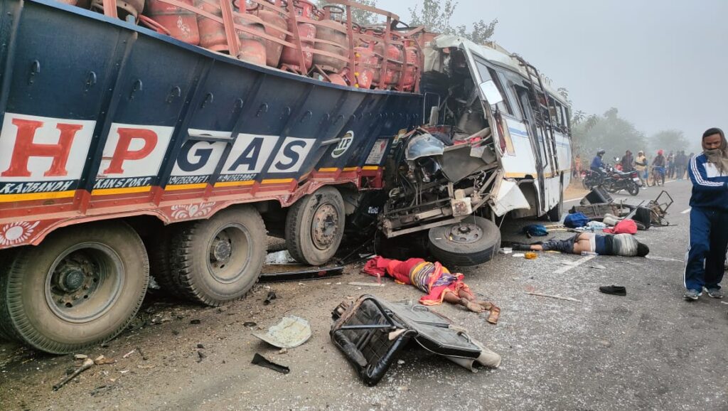 🔹️ सुबह कुहासे के धुंध में अचानक हुए इस भीषण हादसे में दर्जनों व्यक्ति के मौत की लगाई जा रही है आशंका ।