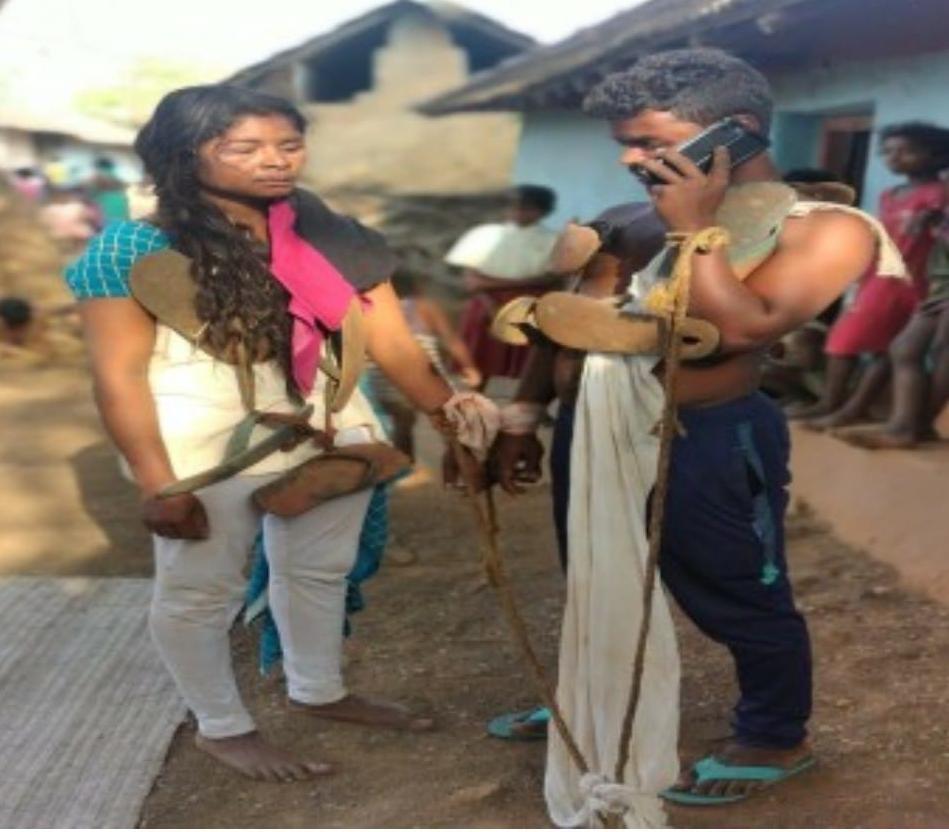 🔹️ मंगलवार अहले सुबह महिला एवं युवक को रस्सी में बांधकर और गले में जूता-चप्पल की माला पहनाकर पूरे गाँव घुमाया । तथा यह कहते हुए चेतावनी दिया कि इस ढंग के कार्य करनेवाले को यही सजा मिलेगी ।