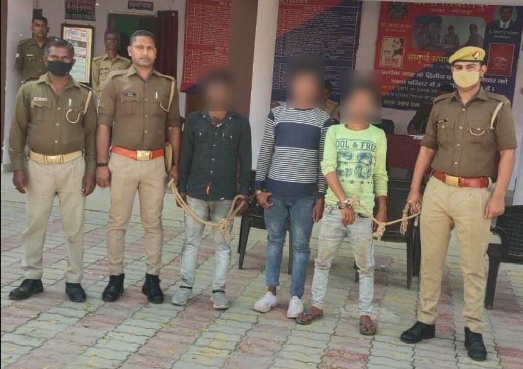 अपराध पर पूर्ण अंकुश लगाने एवं अपराधियों के विरूद्ध त्वरित कार्यवाही करने हेतु दिये गये *वरिष्ठ पुलिस अधीक्षक गोरखपुर* के निर्देश के क्रम मे पुलिस अधीक्षक नगर के निर्देशन व क्षेत्राधिकारी कोतवाली के पर्यवेक्षण में प्रभारी निरीक्षक राजेन्द्र प्रताप सिंह के नेतृत्व में मय पुलिस टीम के वांछित अभियुक्त के गिरफ्तारी हेतु क्षेत्र में मामूर थे कि जरिये मुखविर खास सूचना मिली की साहब आपके थाने पर पंजीकृत मु0अ0सं0-27/2022 धारा 304, 323, 504, 506 भादवि से सम्बन्धित अभियुक्तगण सूरजकुण्ड ओवर व्रिज के नीचे दियाई दिये है यदि जल्दी किया जाय तो अभियुक्तगण पकडे जा सकते है सूचना के आधार पर थाना तिवारीपुर पुलिस द्वारा तत्परता दिखाते हुए मुकदमा उपरोक्त के नामजद /वांछित अभियुक्तगण 1. रामू साहनी पुत्र स्व0 खेताहू साहनी उर्फ मोहन लाल निवासी इलाहीबाग थाना तिवारीपुर गोरखपुर 2. मोनू उर्फ जयकिशन साहनी पुत्र सुरेशचन्द्र साहनी निवासी इलाहीबाग थाना तिवारीपुर गोरखपुर व 3. संतोष साहनी पुत्र स्व0 भीखारी निवासी इलाहीबाग थाना तिवारीपुर गोरखपुर को मुखबिर के निशानदेही पर गिरफ्तार किया गया। जिन्हे जेल भेजने की कार्यवाही की जा रही है ।