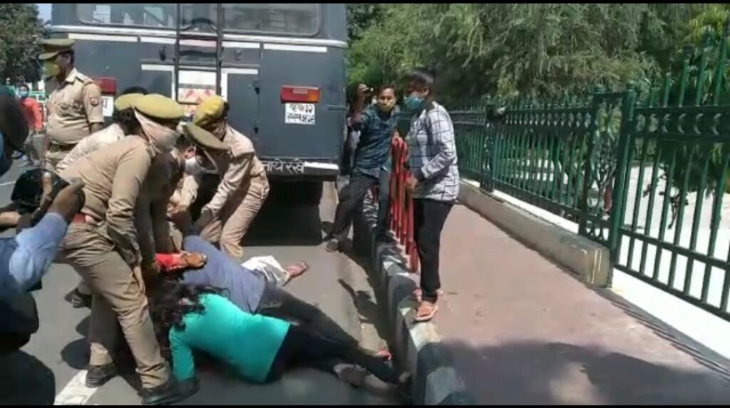 *पीड़ित अपने पिता को न्याय दिलाने के लिए गांधी प्रतिमा हजरतगंज में शांतिपूर्ण धरना प्रदर्शन करने गई मौके पर मौजूद पुलिस ने बेटियों से की अभद्रता*