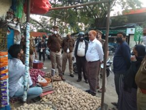 इंस्पेक्टर ब्रजेश सिंह व ADM टीजी पुलिस बल के साथ उतरे सड़क पर।