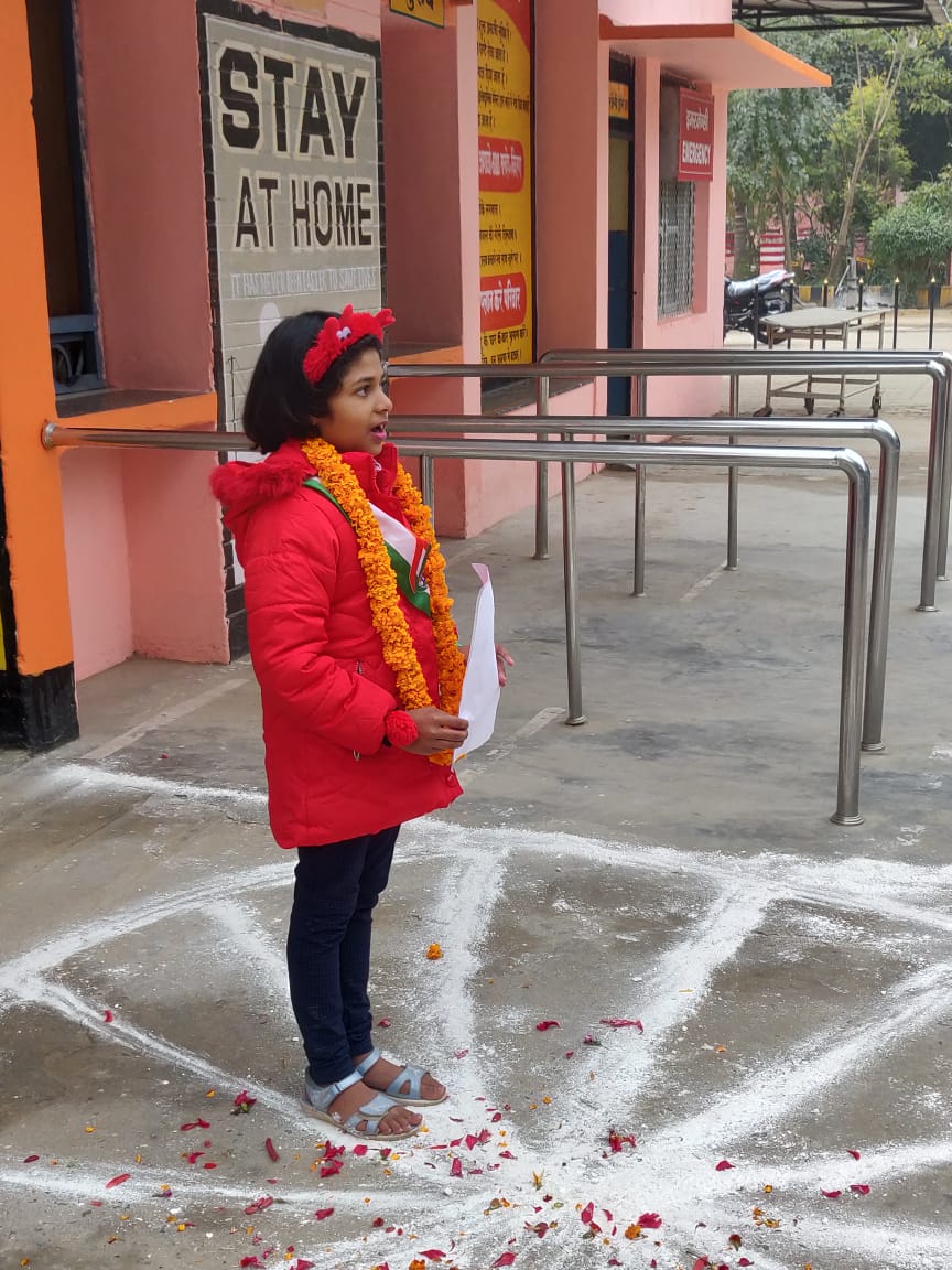 चोलापुर क्षेत्र – सामुदायिक स्वास्थ्य केंद्र चोलापुर के प्रांगण में आज एक बेटी के हाथों द्वारा झंडा फहराने का कार्य किया गया। जानकारी के अनुसार इस अस्पताल में कक्षा चार की छात्रा समृद्धि सिंह जयपुरिया सेठ आनंदराम तरना की छात्रा है ।आज शासन के निर्देशानुसार की सभी स्कूल की शिक्षण संस्थाओं व प्रदेश के सभी कार्यलयोंमें बेटी के द्वारा झंडारोहण का कार्य कराया जाय।इसी कड़ी में आज इस स्कूल की छात्रा समृद्धि सिंह के द्वारा झंडारोहण किया गया जब इस छात्रा से पूछा गया कि आप इस गणतंत्र दिवस पर क्या लोगों को संदेश देना चाहती हैं तब उसने बताया कि समाज में जात पात का जो नारा दिया है वह गलत है हम समाज में एक ही मानव जाति के लोग हैं जाति धर्म का भेदभाव नहीं होना चाहिए ऐसे लोगों के खिलाफ सरकार को कड़ी से कड़ी कार्रवाई करना चाहिए।जिससे हम लोग जातिगत द्वेष को छोड़कर आपस मे प्रेमभाव से रहे।और अंत मे मुख्य चिकित्सा अधीक्षक श्री आर बी यादव ने सभी स्टाफों को इस गणतंत्र दिवस पर कर्तव्य परायणता व बेटी सुरक्षा करने का संदेश दिया।