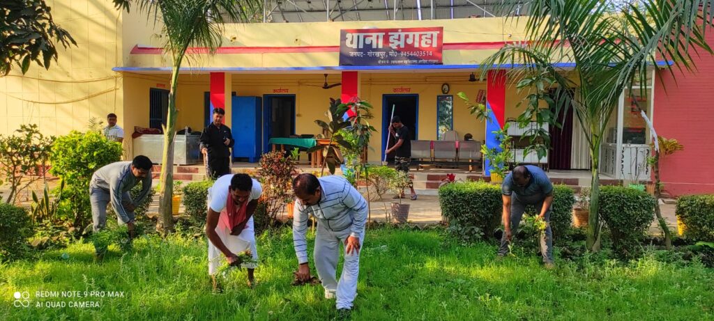 आज दिनांक 13.03.2022 को वरिष्ठ पुलिस अधीक्षक गोरखपुर के निर्देशन में जनपद के समस्त थानों पर स्वच्छता अभियान चलाया गया। जिनमे थाना कार्यालय, बैरक, थाना परिसर विशेषकर खाली पड़े स्थानो पर बेतरतीब उगी हुई घास को कटवाने व गंदगी की साफ सफाई करने के निर्देश दिए थे जिससे गंदगी से होने वाली बीमारियों को रोका जा सके। इसी परिपेक्ष्य में आज जनपद के समस्त थानों में साफ सफाई का अभियान चलाया गया। जिसमें थानों के समस्त अधिकारी एवं कर्मचारीगण ने श्रमदान कर थाना कार्यालय, बैरक, थाना परिसर के साफ सफाई कार्य को पूर्ण किया। वरिष्ठ पुलिस अधीक्षक गोरखपुर ने जनपद के समस्त थाना प्रभारियों को नियमित तौर पर श्रमदान कर साफ सफाई करने के निर्देश जारी किए गये हैं।