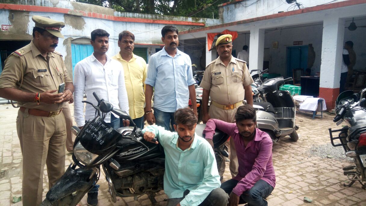 वरिष्ठ पुलिस अधीक्षक वाराणसी के निर्देशन में अपराध एवं अपराधियों के विरुद्ध चलाये जा रहे अभियान के क्रम में दिनांक 26-08-2018 को थाना सिगरा पुलिस द्वारा देखभाल क्षेत्र संदिग्ध व्यक्ति/वाहन चेंकिंग की कार्यवाही की जा रही थी चेंकिग के दौरान बिग बाजार तिराहा थाना सिगरा के पास से मोटर साइकिल पर सवार तीन व्यक्तियों को रोककर उक्त वाहन का कागजात मांगा गया तो नही दिखा सके। नाम पता पूछने पर उन्होने अपना नाम *वसीम उर्फ शेरू पुत्र मंजूर उर्फ कल्लू निवासी लल्लापुरा थाना सिगरा वाराणसी, शहाबुदीन पुत्र मो0 अमीन निवासी बरकत नगर शहीद बाबा मजार के बजरडीहा थाना भेलुपुर वाराणसी, श्याम बाबू पुत्र स्व0 गोपाल सेठ निवासी औरंगाबाद थाना सिगरा वाराणसी* बताये। कड़ाई से पूछताछ के दौरान अभियुक्तगणों द्वारा बताया गया कि उक्त वाहन सरकारी कन्ट्रोल की दुकान के पास लल्लापुरा से चुराया गया था जो बेचने के लिए हम तीनो जा रहे थे कि आप लोगो द्वारा पकड लिया गया अभियुक्तगणों के निशानदेही पर 06 अदद मोटरसाइकिल विभिन्न जगहो से बरामद हुआ। उन्होने यह भी बताया कि आस-पास के क्षेत्र रेलवे स्टेशन, आईपी माल व रथ यात्रा से मोटरसाइकिल चुराना स्वीकार किये। उक्त घटना के सम्बन्ध में थाना सिगरा पुलिस द्वार अभियोग पंजीकृत कर अभियुक्त उपरोक्त का गिरफ्तार कर अग्रिम विधिक कार्यवाही की जा रही है।