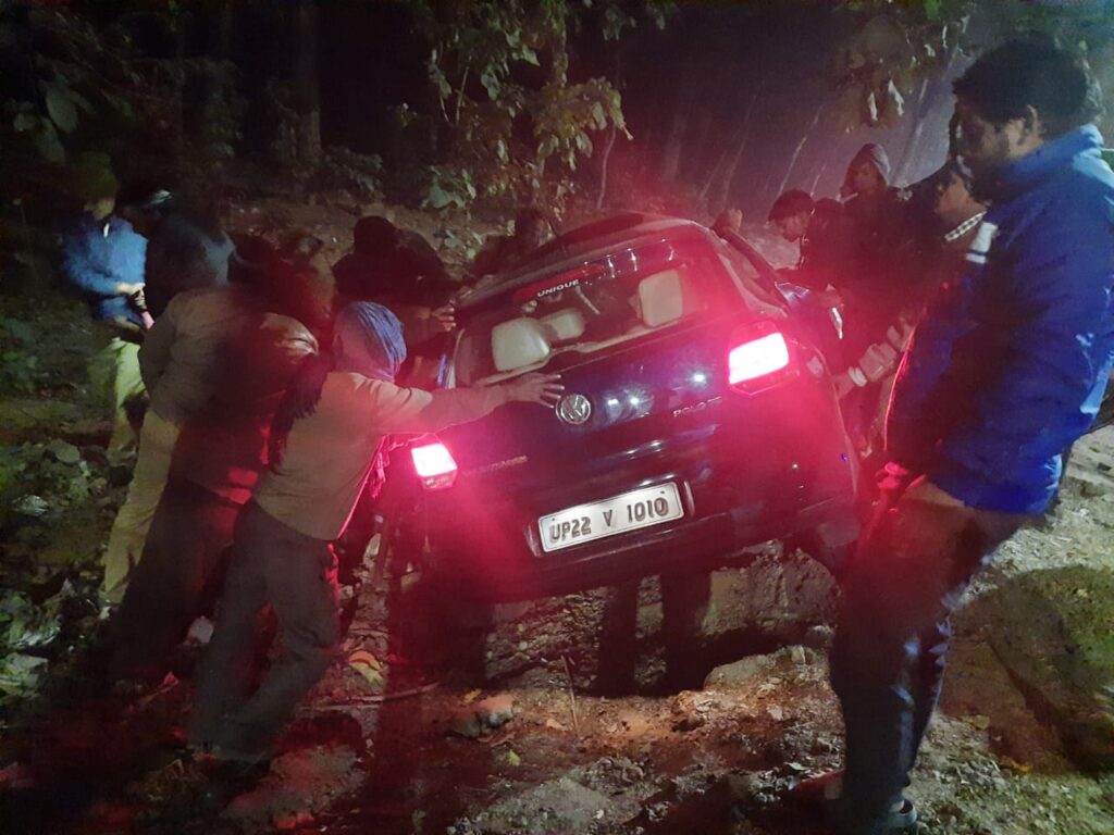 up 22 v1010 पोलो कार बुरी तरह हुई क्षतिग्रस्त