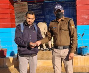 *पुलिस अधीक्षक चमोली श्रीमती श्वेता चौबे महोदया* के निर्देशन में जनपद पुलिस द्वारा दैनिक कर्तव्यों के साथ साथ आम जनमानस की सहायता हेतु अन्य मानवीय कार्यों में भी बढ़ चढ़ कर प्रतिभाग किया जा रहा है। उक्त के क्रम में आगंतुक *विनोद गोदियाल* निवासी पठियालधार द्वारा थाना गोपेश्वर में आकर थाना कार्यालय में मौजूद *कानि0 शैलेंद्र कंडवाल को ₹ 10000* देते हुए बताया कि उक्त पैसे कैनरा बैंक पेट्रोल एटीएम मशीन में निकले हुए थे, पैसे किस व्यक्ति के है कि जानकारी नही होना बताया। उक्त कानि0 द्वारा तत्काल सम्बन्धित एटीएम कैमरे की रिकॉर्डिंग की मदद से पैसे मालिक की जानकारी करते हुए सम्बन्धित बैंक से सत्यापित कर *अभिषेक रावत पुत्र यशवीर सिंह निवासी बसंत बिहार गोपेश्वर चमोली* को सुपुर्द किये गए।