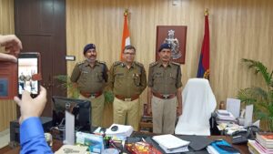 कैम्प कार्यालय पर लगाया पदोन्नति हुए इंस्पेक्टर धीरेन्द्र कुमार उपाध्याय व दिनेश चंद मिश्रा के लगाया सिल्वर स्टार।