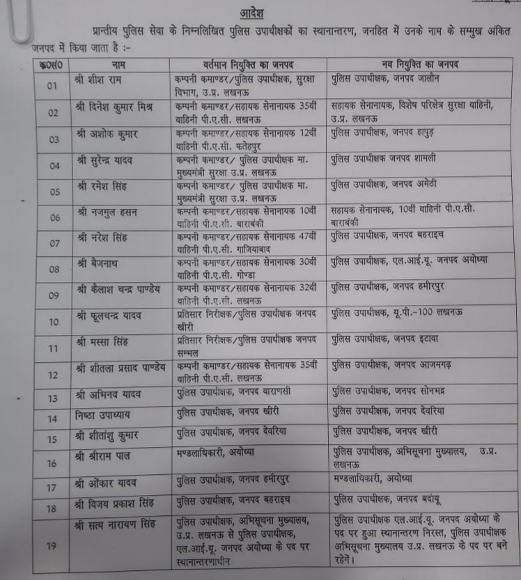आज देर रात डीजीपी मुख्यालय की तरफ से जारी 19 पुलिस उपाध्यक्ष कों के तबादले में बड़ी गलती का हुआ खुलासा