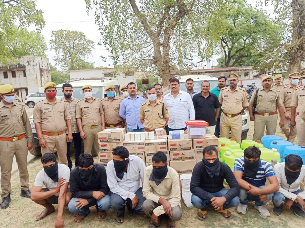 सरकारी देसी शराब की दुकानों में बेचा जाता था स्प्रिट से बना अपमिश्रित शराब। sp सतपाल अंतिल ने बताया कि उत्तर प्रदेश के प्रतापगढ़, कौशाम्बी व कई जिलों में सप्लाई किया जाता था स्प्रिट से बना देसी शराब। पुलिस ने भारी मात्रा में पेटियों में भरी शराब रैपर शराब बनाने के लिए उपयोग किए जाने वाले दो पानी की टंकी एक स्कॉर्पियो एक बोलेरो किया बरामद। पुलिस ने 7 अभियुक्तों को किया गिरफ्तार वही एक अभियुक्त अभी भी फरार है एक फरार अभियुक्त पर पुलिस ने 50000 का इनाम किया घोषित। जिले की स्वाट टीम व पुलिस की संयुक्त टीम ने की कार्रवाई।