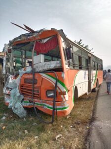 मीरजापुर जनपद के थाना जिगना क्षेत्र अंतर्गत रन्नोपट्टी गांव के पास रोडवेज बस मिर्जापुर से प्रयागराज की तरफ जा रही थी। प्रयागराज की ओर से आ रही सामने से आ रहे कंटेनर ट्रक से टक्कर हो गई, जिसमें बस सवार 15 -16 व्यक्ति घायल है तथा 03 लोगों को गंभीर चोटें आई हैं। थाना प्रभारी जिगना पुलिस बल के साथ मौके पर मौजूद हैं घायलों को इलाज हेतु अस्पताल भिजवाया जा रहा है ।