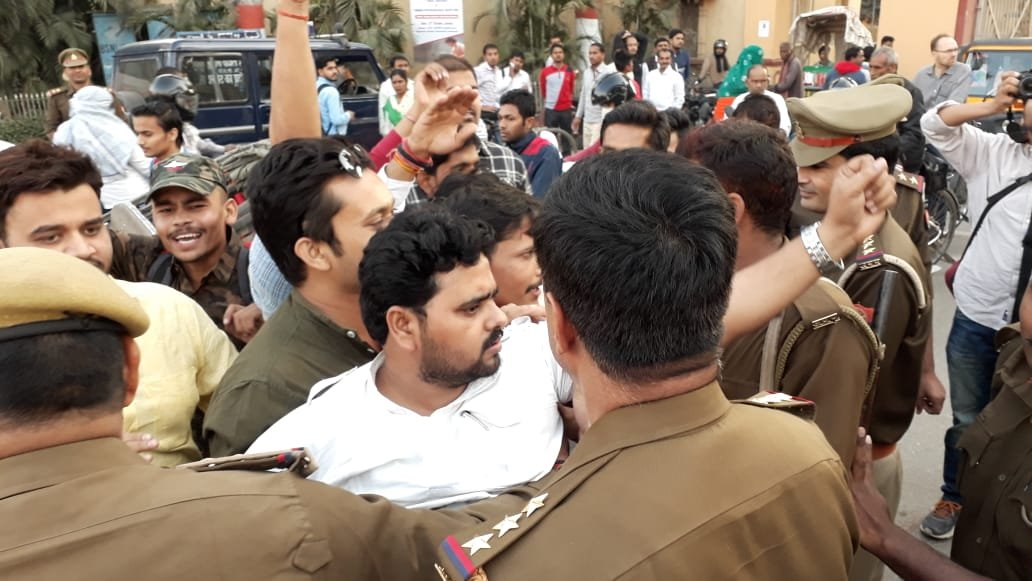 वाराणसी के बीएचयू गेट पर छात्रों ने किया हंगामा