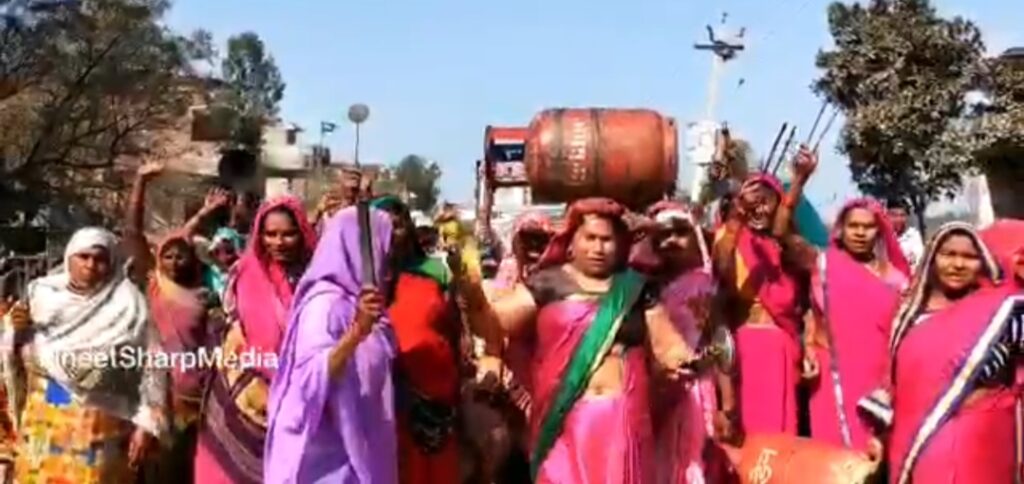 *महंगाई के विरुद्ध गुलाबी गैंग लोकतान्त्रिक ने भरी हुंकार, खाली गैस सिलेंडर लेकर निकाला मोर्चा*