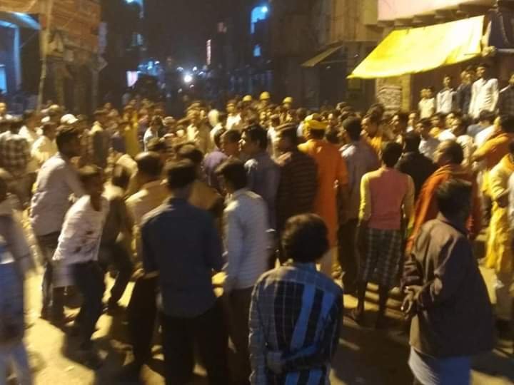 मिर्जापुर. जानकारी के मुताबिक गुरहट्टी मोकेरी बाजार में हिंदू मुस्लिम के बीच में झंडे को लेकर हुआ विवाद जिसमे काफी मात्रा में पत्थर बाजी एवं लाठी डंडे भी चलें क्षेत्रीय लोगों के अनुसार विश्व हिंदू परिषद का जुलूस निकला था जो गुरुहट्टी मुकेरी बाजार के रास्ते से आगे बढ़ रहा था तभी बारावफात के मौके पर मुस्लिम धर्म के लोग भी अपना झंडा लगाकर वहां पर खड़े थे जब विश्व हिंदू परिषद का जुलूस वहां पर पहुंचा तो झंडे को हटाने को लेकर दोनों पक्षों में कहासुनी होने लगी और ए कहासुनी इतना आगे तक बढ़ गई कि पत्थरबाजी एवं लाठी डंडे चलने लग गई. जिसमें कई लोग गंभीर रूप से घायल हो गए .मौके की नजाकत को देखते हुए पुलिस प्रशासन ने वहां पर काफी मात्रा में पुलिस फोर्स खड़ा कर दी गई .जिससे कर्फ्यू जैसा माहौल बन गया है खबर लिखे जाने तक पूरा क्षेत्र पुलिस की कब्जे में हो गया था