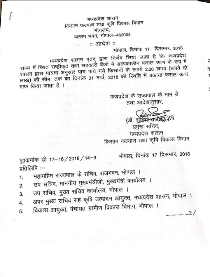 मुख्यमंत्री का शपथ लेते ही किसानों का कर्ज माफ हुआ।