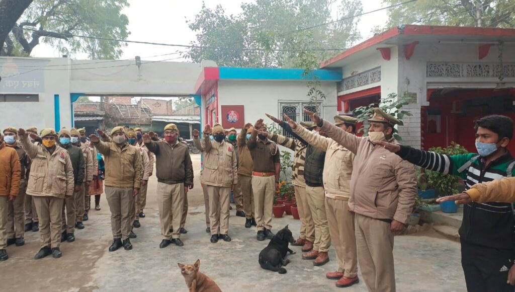 *पुलिस उप महानिरीक्षक/ पुलिस अधीक्षक वाराणसी ग्रामीण व अपर पुलिस अधीक्षक वाराणसी(ग्रामीण) के निर्देशन में आज दिनांक 25/01/2022 को राष्ट्रीय मतदाता दिवस के अवसर पर कोविड-19 के दिशा-निर्देशों/प्रोटोकाल का अनुपालन करते हुए समस्त पुलिस कार्यालय, क्षेत्राधिकारी कार्यालय व थानों में नियुक्त समस्त कर्मियों/मतदाताओं को स्वतंत्र, निष्पक्ष एवं शान्तिपूर्ण निर्वाचन की गरिमा को अक्षुण्य रखते हुए, निर्भीक होकर, धर्म, वर्ग, जाति, समुदाय, भाषा अथवा अन्य किसी भी प्रलोभन से प्रभावित हुए बिना सभी निर्वाचन में अपने मताधिकार के प्रयोग की सपथ दिलाई गयी।