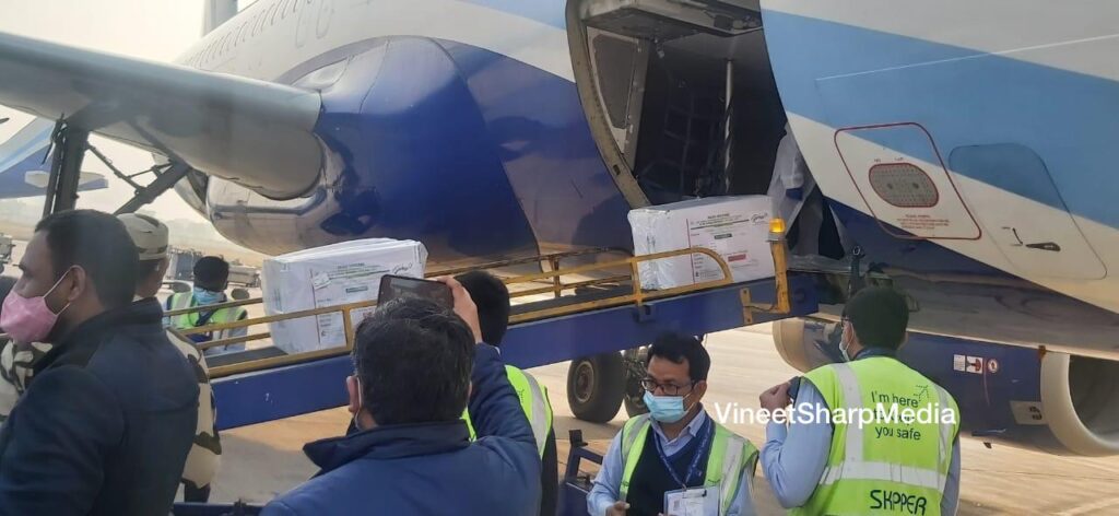 लखनऊ एयरपोर्ट पहुंची कोरोना वैक्सीन की पहली खेप ।
