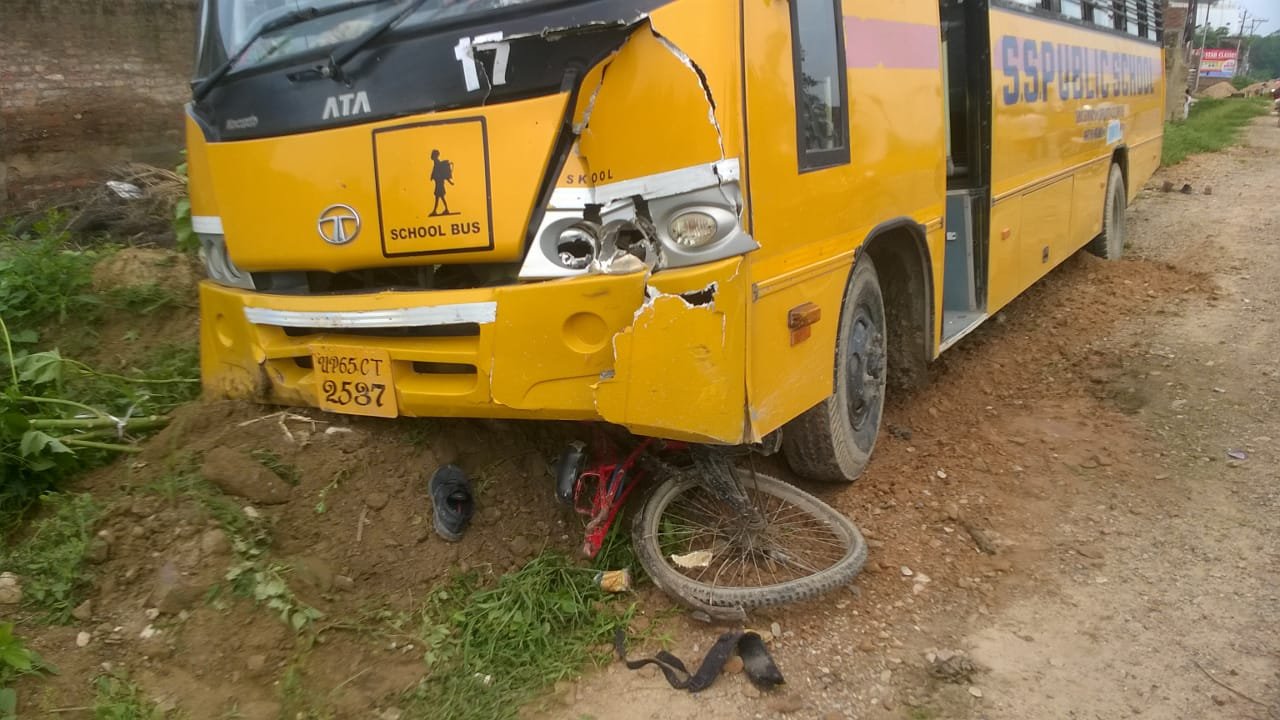 वाराणसी के बड़ागाँव थाना छेत्र मे काजी सराय के पास स्कूल बस ने साइकिल से जा रहे अपने ही स्कूल के छात्र को मारी टक्कर