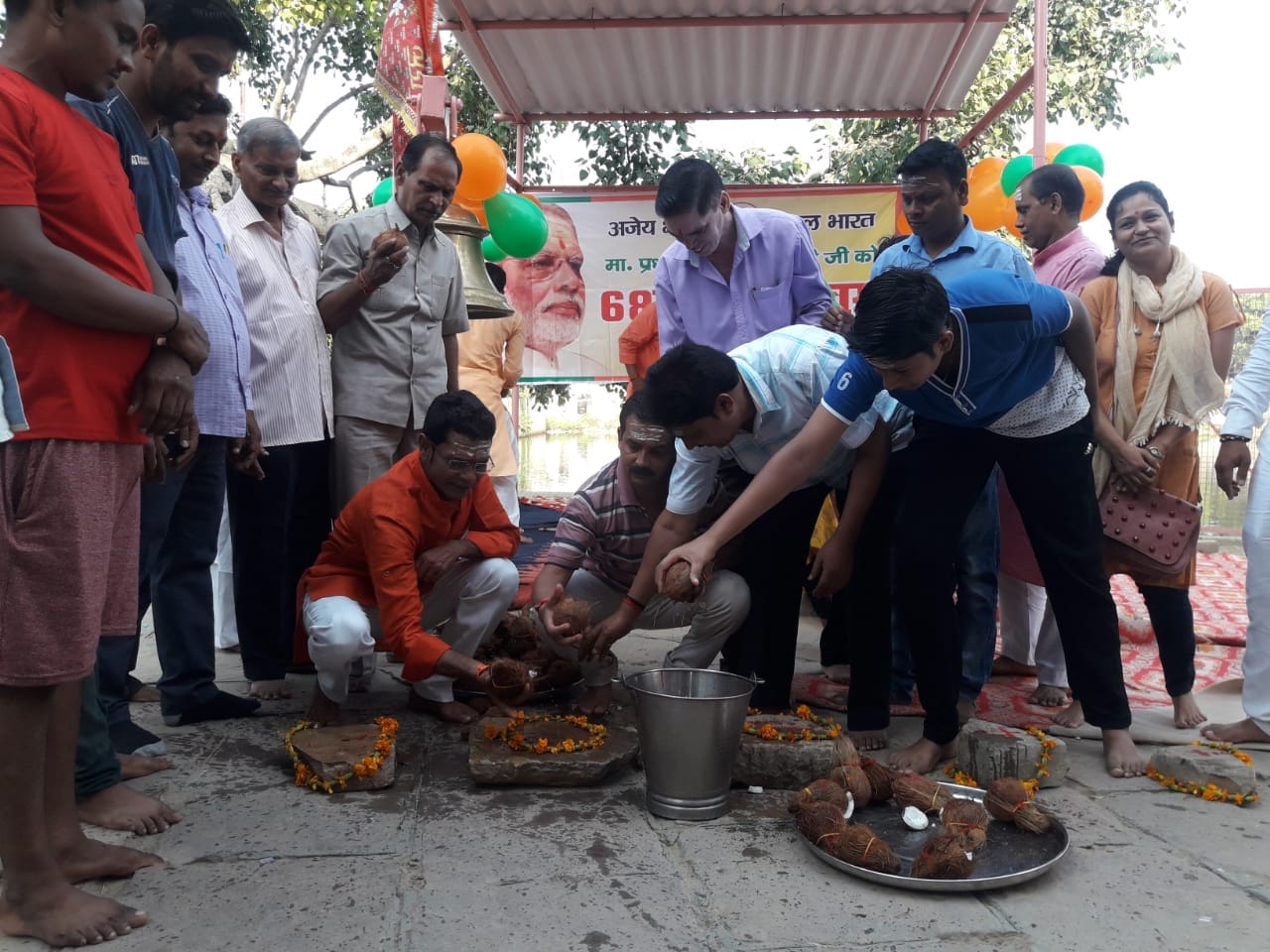 वाराणसी के सांसद वह देश के प्रधानमंत्री नरेंद्र मोदी के 68वें जन्मदिन के मौके पर शिवपुर स्थित अष्टभुजी मंदिर पर लोगों ने 68 नारियलों की बलि देने के साथ ही विधि विधान से हवन पूजन कर उनके दीर्घायु होने की कामना की
