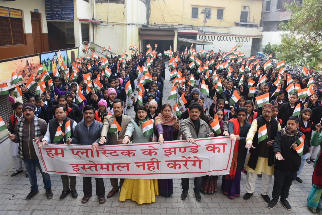 वाराणसी, 22 जनवरी, पर्यावरण के लिए अभिशाप बने प्लास्टिक व पॉलिथीन के खिलाफ जन जागरूकता अभियान के तहत आगामी 26 जनवरी गणतंत्र दिवस के पर्व को देखते हुए बच्चों व आम जनमानस से प्लास्टिक के बने झंडे का इस्तेमाल न करने की अपील के साथ सामाजिक संस्था सुबह- ए- बनारस क्लब के बैनर तले संस्था के अध्यक्ष मुकेश जायसवाल, समाज सेविका डा० रितु गर्ग, एवं श्री वल्लभ विद्यापीठ बालिका इंटर कॉलेज की प्राचार्या डा० मुक्ता पांडे के नेतृत्व में कालेज की छात्राओं के बीच भैरवनाथ स्थित कालेज के प्रांगण में कागज के बने भारत की आन- बान-शान- राष्ट्रीय ध्वज तिरंगा झंडा बांटकर प्लास्टिक से बने झंडे का बहिष्कार करने की शपथ दिलाई गई। सभी छात्राओं से संस्था की ओर से पुरजोर ढंग से अपील की गई कि वह न तो प्लास्टिक के बने झंडे का इस्तेमाल करेंगी, और न तो प्रचार-प्रसार के माध्यम से किसी और को करने देंगी। उपरोक्त अवसर पर बोलते हुए संस्था के अध्यक्ष मुकेश जायसवाल, डॉ० रितु गर्ग, एवं कालेज की प्राचार्या डॉ०मुक्ता पांडे ने कहां की जिस प्रकार से स्वतंत्रता दिवस एवं गणतंत्र दिवस पर बच्चों द्वारा प्लास्टिक के बने झंडे का इस्तेमाल किया जाता है । उसी प्लास्टिक के बने झंडे का बहिष्कार करने के साथ-साथ छात्रों एवं बच्चों से कागज के बने झंडे का इस्तेमाल करते हुए इस महान पर्व को मनाने की अपील करने आए हैं, और छात्राओं के माध्यम से यह संदेश भी देने आए हैं, कि आप अगर बच्चों के हाथ में झंडा देना चाहते हैं तो वह कागज का ही बना हो न की प्लास्टिक का। साथ ही साथ छात्राओं के माध्यम से यह अपील भी की गई की सभी लोगों को इस बात पर भी गहराई से ध्यान देना होगा कि राष्ट्रीय पर्व मनाने के बाद कोई भी शख्स हमारे आन-बान-शान- तिरंगे को किसी भी ऐसे स्थान पर न फेंके, जहां पर हमारे झंडे का अपमान हो। ऐसे लोगों में जागरूकता लाना जरूरी है।