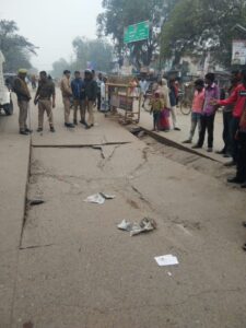👉 सारनाथ थानांतर्गत पंचक्रोशी चौराहे पर आरसीसी की सड़क सुबह – सुबह धंस गयी। आरसीसी वाली सड़क धसने से लोग आश्चर्यचकित हो गए। सुरक्षा की दृष्टि से मौके पर क्षेत्रीय पुलिसकर्मी पहुँच कर उस मार्ग पर आवागमन बन्द कर दिया गया है |