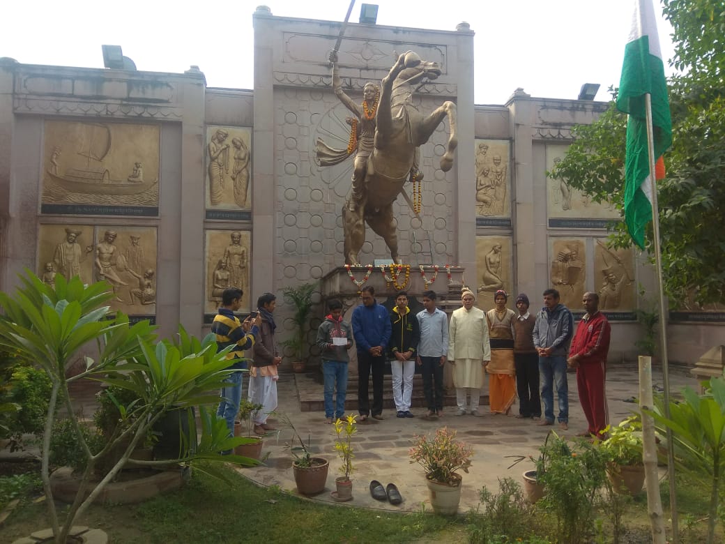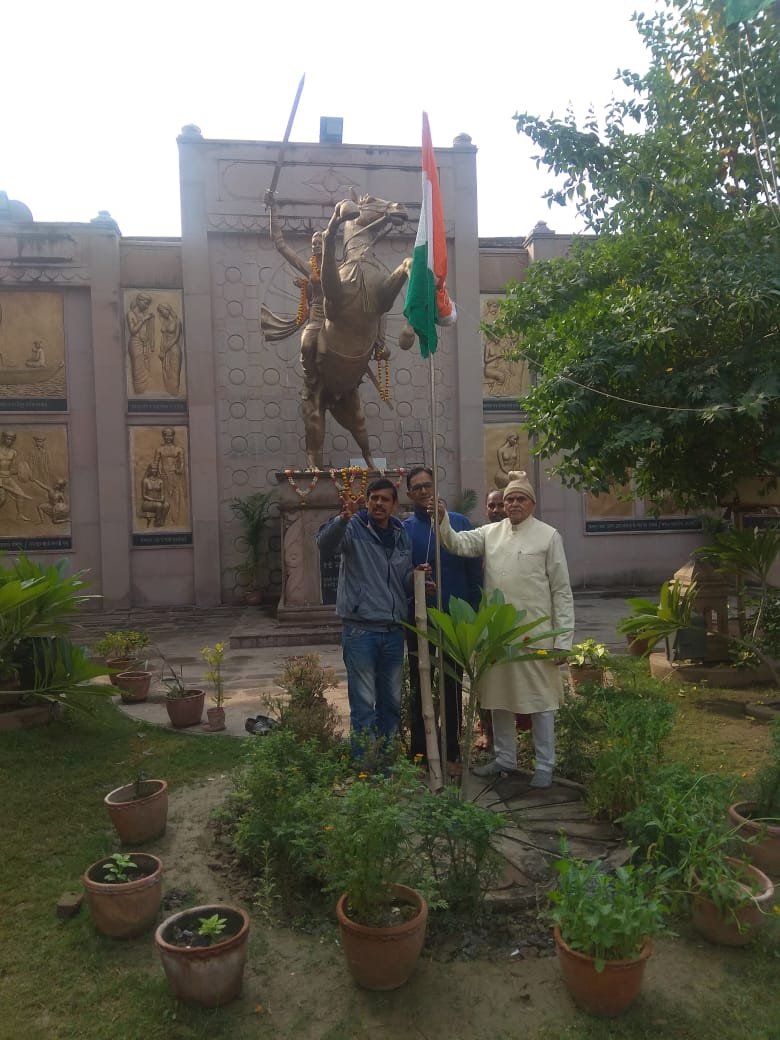 वाराणसी 26 जनवरी जागृति फाउंडेशन के तत्वाधान में देश का 70 वां गणतंत्र दिवस समारोह शनिवार को भदैनी स्थित वीरांगना महारानी लक्ष्मी बाई की जन्म स्थली पर मनाया गया। सर्वप्रथम मुख्य अतिथि साहित्यकार डॉ जयप्रकाश मिश्र जागृति क्लासेस के निदेशक विजय दत्त तिवारी एवं जागृति फाउंडेशन के महासचिव रामयश मिश्र ने संयुक्तरूप से झंडारोहण करके किया । इसके पश्चात राष्ट्रगान की प्रस्तुति हुई । इस अवसर पर मुख्य अतिथि साहित्यकार डॉ जयप्रकाश मिश्र ने वीर रस की कविताओं के माध्यम से देश के स्वतंत्रता सेनानियों को नमन करते हुए कहा कि उनके बलिदान के कारण ही आज हम आजाद हैं वह नहीं होते तो हमें आजादी इतनी जल्दी नहीं मिलती जागृति क्लासेस के निदेशक विजय दत्त तिवारी ने कहा कि लंबी लड़ाई और हजारों बलिदानों के बाद हमें ये अवसर मिला है कि आज हम गणतंत्र दिवस मना रहे हैं हमें आज संकल्प लेना होगा कि कठिन संघर्ष और बलिदान के बाद मिली देश की आजादी को हम जात-पात ऊंच-नीच में नहीं बटने देंगे और देश के विकास के लिए काम करेंगे। जागृति फाउंडेशन के महासचिव रामयश मिश्र ने कहा कि वीरांगना महारानी लक्ष्मी बाई की जन्म स्थली पर देश का 70 वां गणतंत्र दिवस समारोह मनाते हुए बहुत ही गर्व की अनुभूति हो रही है क्योंकि महारानी लक्ष्मीबाई ने ही सर्वप्रथम अंग्रेजों से लड़ाई लड़कर देश की आज़ादी की नींव डाली थी उसके बाद ही अपना देश आजाद हुआ । इस अवसर पर नंदलाल बाजोरिया संस्कृत महाविद्यालय के छात्र उदित नारायण मिश्र ने कविता सुनाकर सबको मंत्रमुग्ध कर दिया इस अवसर पर वाराणसी के युवा योगी विनय कुमार मिश्र ने भी गणतंत्र दिवस समारोह के उपलब्धियों पर प्रकाश डाला और देश की आजादी के लिए संघर्ष करने वाले स्वतंत्रता सेनानियों की वीर गाथा सुनाकर सबको भाव विभोर कर दिया संचालन एवं संयोजन जागृति फाउंडेशन के महासचिव रामयश मिश्र ने किया । इस अवसर पर सत्यम झा आशुतोष पांडे उदित नारायण मिश्रा नीतीश कुमार मुरारी कुमार द्विवेदी हरीनाथ गौर नर्मदा गौड़ सहित काफी संख्या में लोग उपस्थित थे।