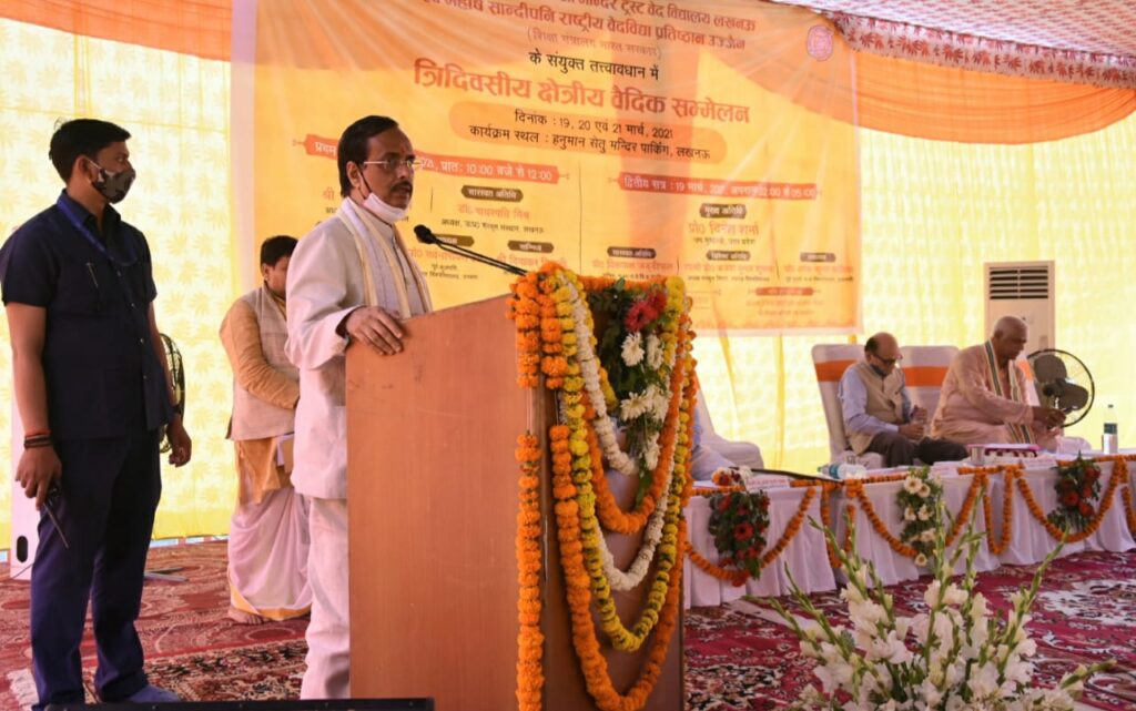 उप मुख्यमंत्री डॉ दिनेश शर्मा ने यह विचार आज यहां हनुमान सेतु मंदिर पार्किंग स्थल पर संकट मोचन हनुमान जी मंदिर ट्रस्ट वेद विद्यालय एवं महर्षि सांदीपनि राष्ट्रीय वेदविद्या प्रतिष्ठान उज्जैन (शिक्षा मंत्रालय भारत सरकार) के संयुक्त तत्वाधान में आयोजित तीन दिवसीय क्षेत्रीय वैदिक सम्मेलन के अवसर पर व्यक्त किया। उन्होंने कहा कि प्रदेश सरकार ने मॉडल के रूप में कुछ संस्कृत विद्यालयों में बालिका छात्रावास का निर्माण कराए जाने का निर्णय लिया है। सरकार ने वैदिक संस्कृति के पुनर्जीवन के लिए अयोध्या में निजी क्षेत्र के सहयोग से श्रीराम वैदिक विश्वविद्यालय की स्थापना किए जाने का निर्णय लिया है जिसमें वैदिक विद्वानों द्वारा पठन-पाठन के प्रोफेशनल कोर्स चलाए जाएंगे, जिससे विद्यार्थियों को पढ़ने के बाद रोजगार तलाशने में कठिनाई ना हो। श्रीराम विश्वविद्यालय में वैदिक संस्कृति के साथ-साथ विभिन्न धर्म शास्त्रों पर शोध का कार्य भी होगा। इसके साथ ही यहां पर ज्योतिर्विज्ञान एवं कर्मकांड का अलग से विभाग भी बनाया जाएगा। उन्होंने कहा कि दुनिया के तमाम देश संस्कृत भाषा पर शोध कर रहे हैं। संस्कृत भाषा अन्य भाषाओं की आदि जननी है। प्रदेश सरकार संस्कृत भाषा के उन्नयन के लिए पूरी गंभीरता के साथ प्रयास कर रही है।