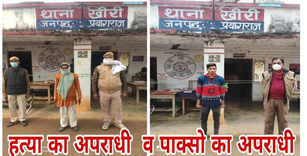 प्रयागराज : थाना खीरी पुलिस द्वारा हत्या तथा पाक्सो एक्ट के अपराध में वांछित चल रहे दो अपराधी को दबोचा गया।डीआईजी/एसएसपी प्रयागराज सर्वश्रेष्ठ त्रिपाठी के निर्देश पर एसपी यमुनापार सौरभ दीक्षित के निर्देशन में सी.ओ. मेजा डा०भीम कुमार गौतम के पर्वेक्षण में अपराध एव अपराधियो के विरुद्ध चलाये जा रहे अभियान के तहत खीरी थानाध्यक्ष संतोष कुमार सिंहलगातार दबिश देकर मंगलवार को मुखबीर की सटीक सुचना पर हत्या मामले में वांछित चल रहे विक्रमा सिंह पुत्र सुदर्शन सिंह नि०ग्राम ऊंचगांव खीरी गांव से ही गिरफ्तार किया।इसी क्रम में निर्देश के अनुपालन में थानाध्यक्ष खीरी के नेतृत्व में उ०नि०अस्वनी कुमार मौर्या थाना खीरी पर दिनाँक 20-11-2020 को पंजिकृत 201/2020धारा 363/366/376/506/आईपीसी3/4पाक्सो एक्ट से सम्बन्धित वांछित बाल अपचारी मनमोहन आदिवासी गॉंव पचौहा को आज खूँटा चौराहे से पकड़ने में सफलता मिली जानकारी के अनुशार दोनों अपराधी के खिलाफ थाना पुलिस द्वारा विधिक कार्यवाही की गयी।