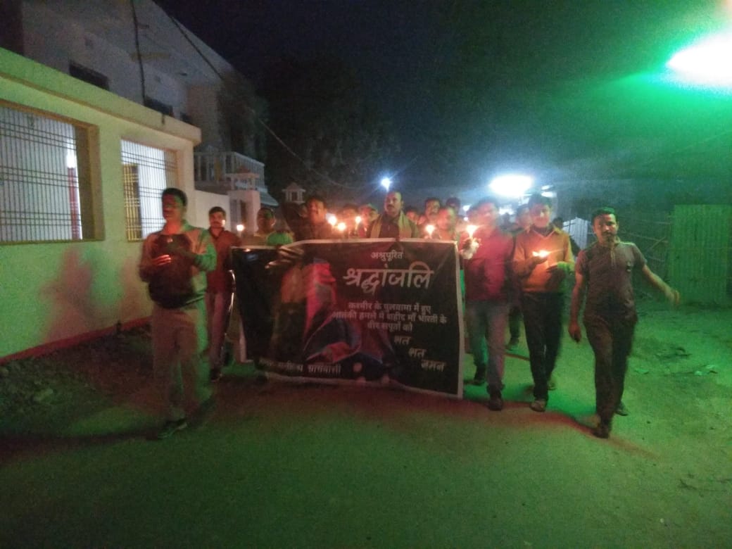 CIB टिम,बिहार पूर्णिया : दिनांक 16.2. 2019 को पुलवामा में हुए आतंकी हमलों में शहीद हुए सैनिकों को रानीपतरा में ,,,क्राइम इन्वेस्टिगेशन ब्यूरो CIB, की टीम के तरफ से वीर जवान भारत माँ के लाल अमर शहीद सैनिकों को श्रद्धांजलि दी गई और पूरा शहर शोक संवेदना में डूबा रहा और 12:00 बजे तक पूरे शहर को शोक संवेदना में बंद रखा गया तत्पश्चात आतंकवादियों का पुतला निकालकर बाजार के चौराहे पर जलाया गया और पाकिस्तान मुर्दाबाद हिंदुस्तान जिंदाबाद के नारे लगाए गए और लोगों में पाकिस्तान के खिलाफ जबरदस्त आक्रोश देखा गया और कहां गया कि इस दुख की घड़ी में पूरा देश सैनिकों व सरकार के साथ एकजुटता के साथ खडा है अब इन आतंकवादियों का समुचित व्यवस्था करने का वक्त आ गया है अब इनको ईट का जवाब पत्थर से देना होगा इसमें पूरे CIB टीम के लोग व गांव,शहर, आस-पास के सभी लोग सम्मिलित हुये थे और एक तरफ से पूरी आवाज में पाकिस्तान मुर्दाबाद और हिंदुस्तान जिंदाबाद के नारे लगाए गए |M.K. सिंह, रावण उरावन के अगुवाई में पुरे CIB टीम के साथ अन्य सम्मनित लोग मोजूद रहे।