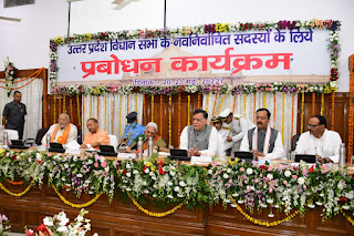 लखनऊ- नव निर्वाचित विधायकों के लिए आयोजित दो दिवसीय प्रबोधन कार्यक्रम के अंतिम दिन मुख्यमंत्री योगी आदित्यनाथ ने जनप्रतिनिधियों को सार्वजनिक जीवन में शुचिता का पाठ पढ़ाया। उन्होंने विधायकों को ठेके पट्टे से दूर रहकर जनता की सेवा में जुटने की नसीहत दी।उन्होंने विधायकों को अधिकारियों की ट्रांसफर व पोस्टिंग के चक्कर में न पड़ने की सलाह देते हुए कहा कि इससे जनता के बीच आपकी छवि खराब होगी। विधानभवन के तिलक हाल में विधायकों को संबोधित करते हुए मुख्यमंत्री योगी ने जनप्रतिनिधियों को एक आदर्श जनप्रतिनिधि के तौर पर अपनी छवि बनाने की सलाह दी।मुख्यमंत्री योगी ने कहा कि फील्ड में जाकर जनता के बीच सकारत्मक भाव से काम करने से ही आपकी छवि बनेगी। उन्होंने कहा कि सार्वजानिक जीवन में शालीनता और धैर्य का बड़ा महत्व है और इसे आत्मसात करके ही आगे बढ़ा जा सकता है। शार्टकट या ठेके पट्टे से सार्वजानिक जीवन का पतन होगा। उन्होंने जनप्रतिनिधियों से जनता से अच्छा व्यवहार करने के साथ ही उनकी सेवा मे तत्परता दिखाने की भी सलाह दी।मुख्यमंत्री ने विधायकों से जनता से सीधा संवाद रखने पर जोर देते हुए कहा कि सरकार ने तय किया है कि मुख्यमंत्री समेत सभी मंत्री सोमवार से बृहस्पतिवार तक लखनऊ में रहेंगे और शुक्रवार से रविवार तक फील्ड में जाकर जनता के बीच रहकर काम करेंगे। इससे जनता की समस्याओं को समझने में आसानी होगी।उन्होंने विपक्ष के विधायको से भी खास तौर पर अपील करते हुए कहा कि विकास को लेकर राजनीति को आड़े नहीं आने देना चाहिए। सरकार कि योजनाएं जनता के लिए बनती है इसलिए योजनाओं का लाभ जनता को दिलाने में सकारात्मक सोच के साथ काम करें। कार्यक्रम में राज्यपाल आनंदीबेन पटेल उपमुख्यमंत्री बृजेश पाठक उप मुख्यमंत्री केशव प्रसाद मौर्य सतीश महाना सहित कैबिनेट के मंत्री गण सहित विधायक मौजूद रहे।