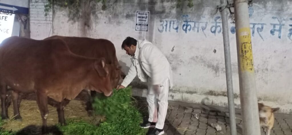 SPCA ऑल इंडिया अंडर मिनिस्ट्री ऑफ सोशल जस्टिस एंपावरमेंट के उत्तर प्रदेश के चेयरमैन शिवकुमार पासवान रात 10:00 बजे सरूप नगर से गुजरते हुए कुछ भूखे पशुओं को देखा अपनी गाड़ी रुकवा कर उनको हरा चारा खिलाया और और आगे बढ़े 1 जनवरी से यह तय किया गया दिन में भूखे पशुओं की सेवा प्रतिदिन हरा चारा खिलाकर हम कर रहे हैं लेकिन अब रात्रि का भी भोजन पशुओं के लिए हरा चारा एसपीसीए उत्तर प्रदेश के चेयरमैन शिवकुमार पासवान स्वयं ही पशुओं को लावारिस जानवरों को हरा चारा खिलाएंगे